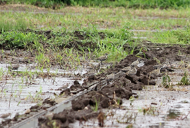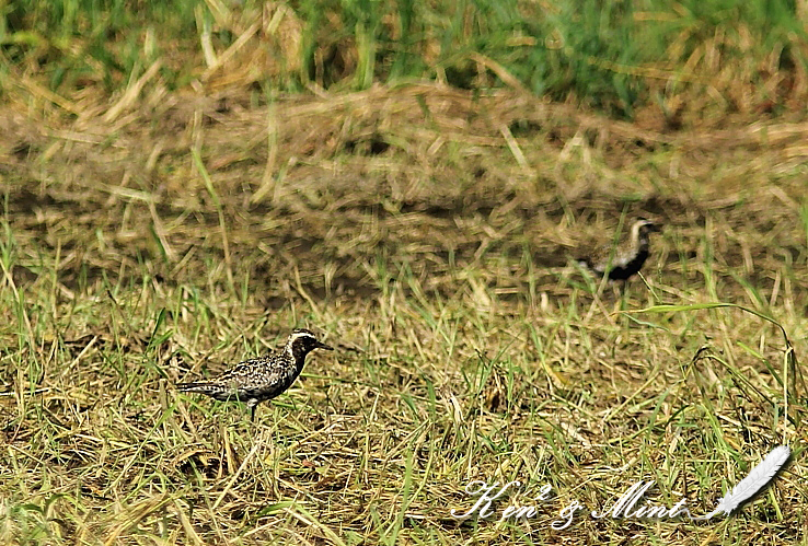 今日も暑い中、田園を徘徊して来ました(^^; タマシギさんを探していたのですが・・見つかりませんでした(TT) ムナグロさんは先日アップしましたが今日は夏羽のムナグロ さんに会うことが出来ました。 偶然同じ場所で田園巡回をしていた鳥撮り仲間さんから 「ムナグロが沢山いるよ♪」と連絡を頂き早速ケンケンと現場へ・・ お陰様でムナグロさん10羽位の群れを撮る事が出来ました♪ 「ありがとうございました m(__)m 」 夏羽のムナグロさんと冬羽のムナグロさんが混在していました。 撮影していたら、犬の散歩の人が近づいて来て・・ 全部飛ばれてしまいました(^^; 次回は、もう少しガッツリ綺麗に撮りたいと思っています^^ 撮影日:2011年08月14日 撮影者:By Mint 野鳥ブログに参加しています。 1日1クリックのご協力お願いしますm(_ _)m |