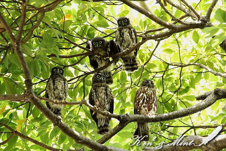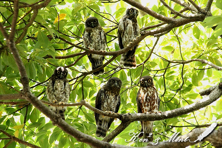 アオバズクさん一家、みんな大きくなりました^^ 左下は、お父さんです。4人兄弟は仲良く並んでくれました♪ みんなバラバラで枝に止まっていましたが、何と!みんな まとまってくれました♪ 睨まないでよう~(^^; もう・・・ 先にお母さんが山に行っているのかなぁ~(*^^*) ニアミス!!!お父さんの足の下に、蝉がぁーーーーー! 食べちゃうかなぁ?って思って見ていましたが・・・食べません でした(^^; アオバズクさん♪みんな元気で(^0^)また来年戻って来てねぇ~♪ 撮影日:2011年08月17日 撮影者:By Mint 野鳥ブログに参加しています。 1日1クリックのご協力お願いしますm(_ _)m |