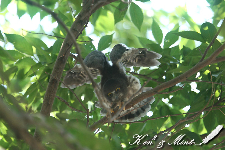 こちらは第3子です。この日の朝、巣から出る際落ちてしまったとの事で 地元の方に助けられ、割と近めの木の上に落ち着いていました。 これがノートリサイズ。携帯で撮ってる人もいました(^^; こちらは第1子です。羽根をしきりに動かして、これからの長旅に備え 飛ぶ練習に余念がないようです。 来年もどこかの営巣木で会えるように、みんな元気に育ってね(^o^)/ 撮影日:2011年7月16日 撮影者:kenxken 野鳥ブログに参加しています。 1日1クリックのご協力お願いしますm(_ _)m |